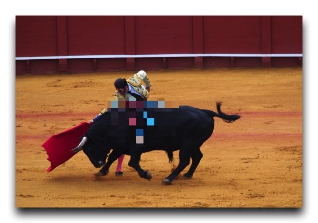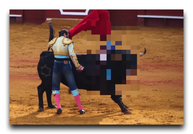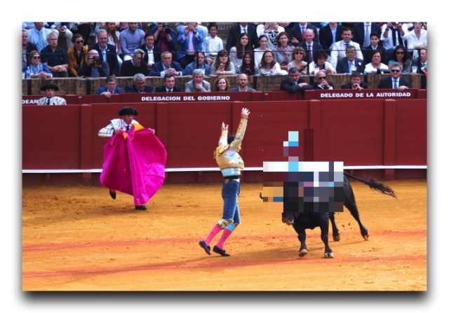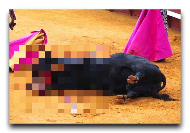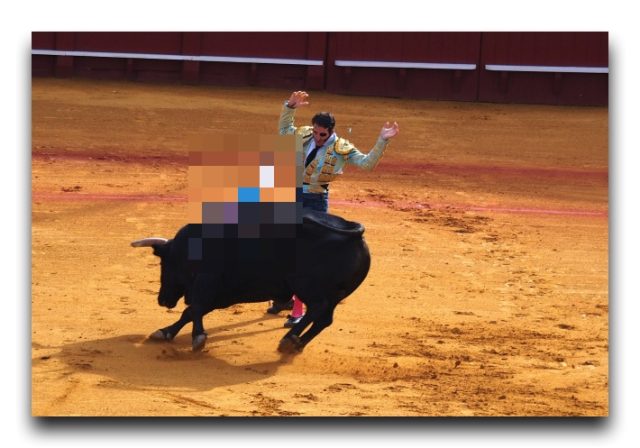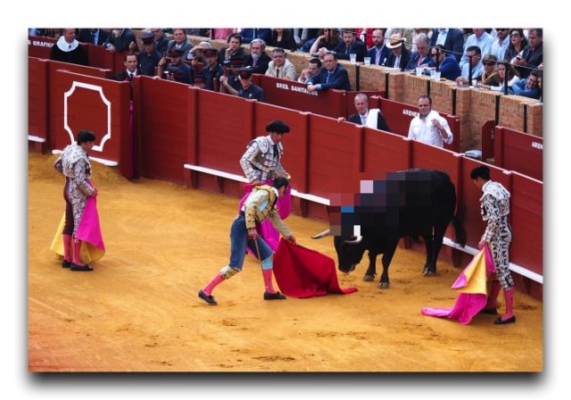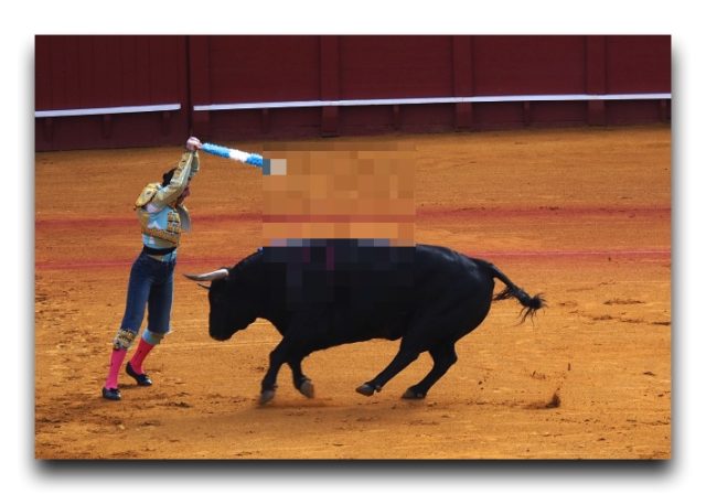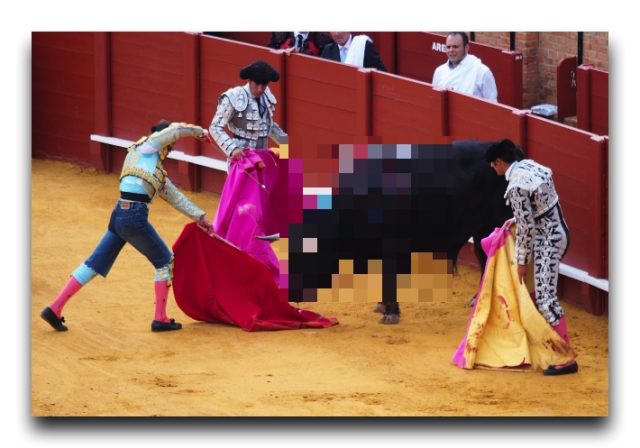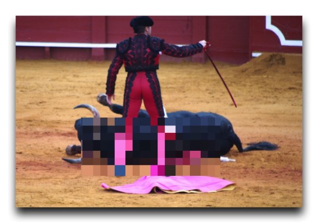そして最後に闘牛士が牛の頭に長剣を突き刺した瞬間。