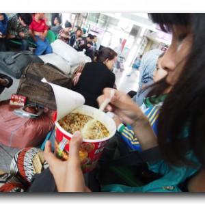 バスはBRTほど厳重じゃないけど、バス停には必ず警備がいて、液体物が外から分かると回収される。