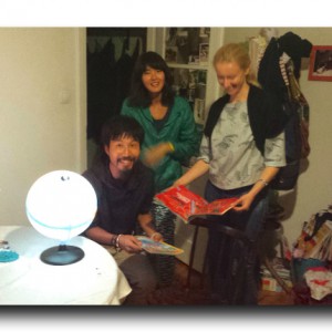 僕たちも読もうとしたけど全部イタリア語で全然分からない、隣には同じ宿に泊まっていた韓国人の女の子。