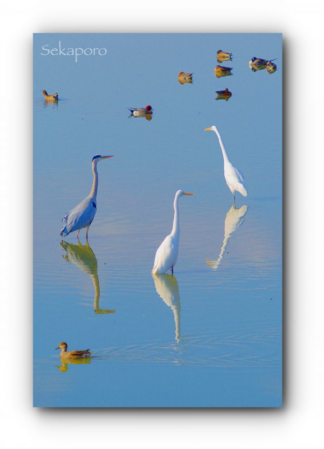 コガモ、オナガガモ、ミコアイサ、カルガモ、タゲリ、コサギ、ダイサギ、アオサギ、カワセミ、ジョウビタキ、イソヒヨドリ。